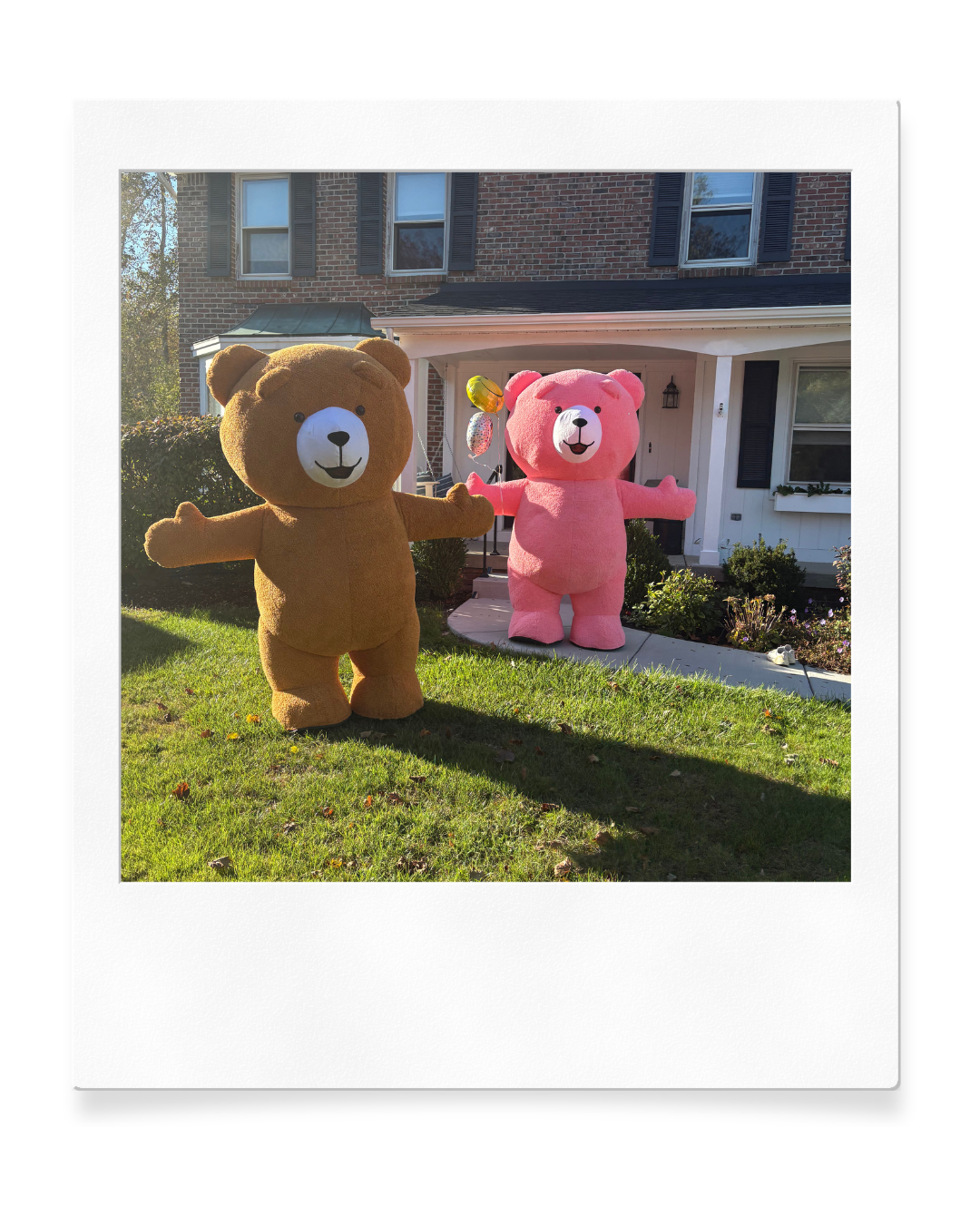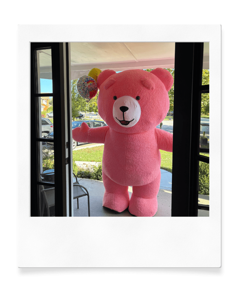 The biggest, cutest delivery bears in the Buffalo NY area. Our friendly, giant, costumed teddy bears deliver birthday wishes, flowers, balloons, or small gifts. Our goal is to create joyful, memorable moments for every occasion, bringing smiles and capturing perfect photo opportunities.